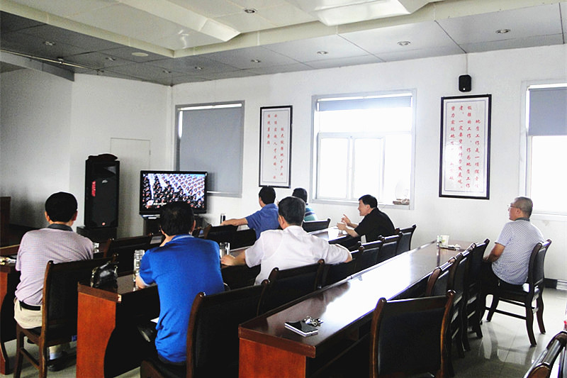 ? ? 9月3日,紀念中國人民抗日戰爭暨世界反法西斯抗戰勝利70周年紀念大會在北京天安門廣場隆重舉行,物化探隊領導班子成員在六樓會議室集中觀看了紀念大會全程直播。???