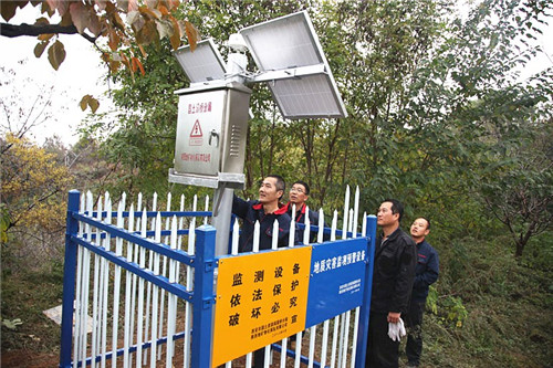 ? ? ? 物化探隊首個地質災害智能監測預警示范工程在西安灞橋區席王鄉王家坡村建成, 近日正式投入使用,并進入常態化監測。